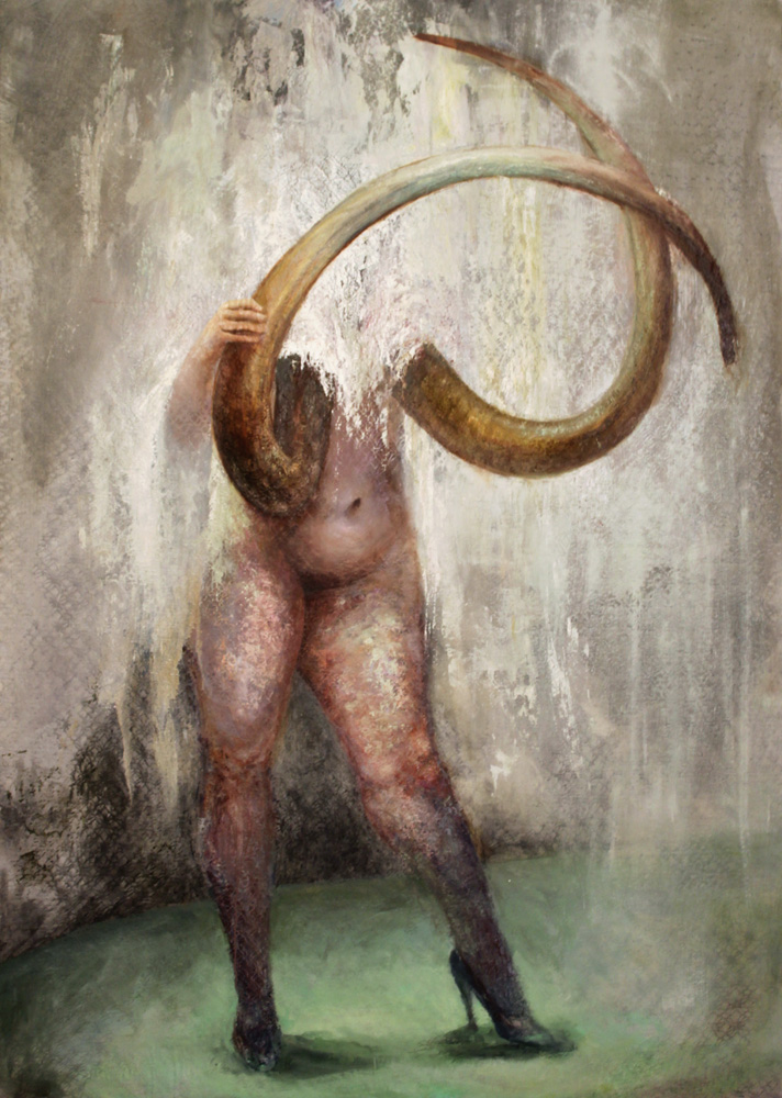 A Light Snack.  Oil on Canvas. Arms.  Oil on Fabric. His Head in My Hands.  Oil no Panel. Verla's Backyard.  Oil on Canvas. Tusky.  Oil on Canvas on Lace.